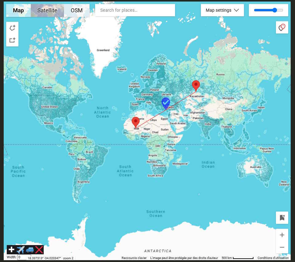 It adds 3 markers that will always be aligned and visually equidistant on the map.